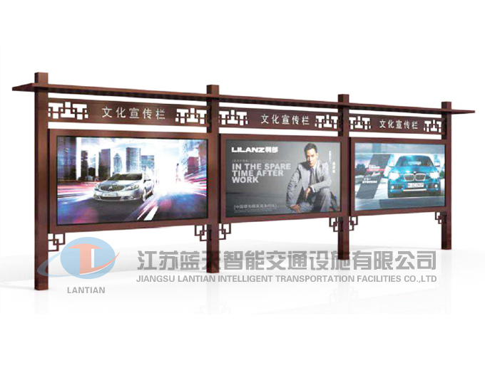 是一家生產(chǎn)宣傳欄,候車亭,公交站臺,閱報(bào)欄,指路牌,廣告垃圾箱,滾動(dòng)換畫燈箱等系列產(chǎn)品廠家!產(chǎn)品多達(dá)上百種,亦可根據(jù)客戶的需求加工制作各種型號、規(guī)格的產(chǎn)品。目前已經(jīng)成功的向市場推出裝備有太陽能的各類產(chǎn)品,緊跟國家倡導(dǎo)“節(jié)能低碳”的環(huán)保政策。